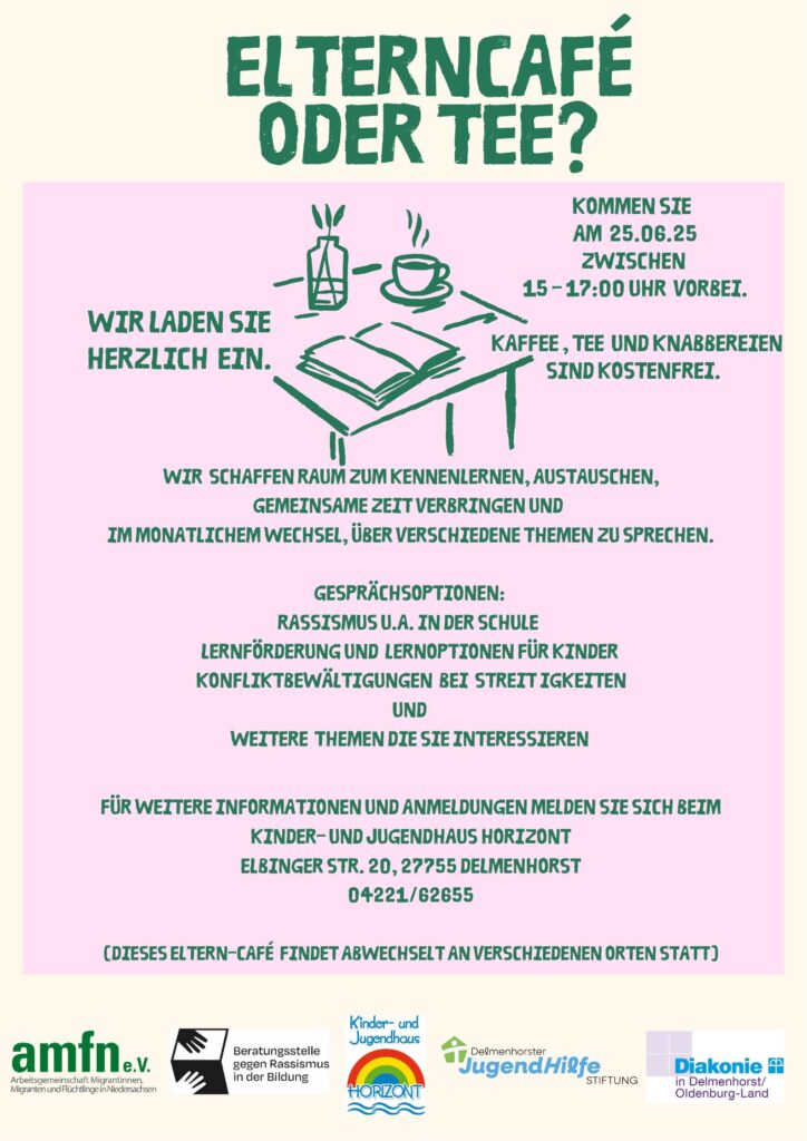 Plakat mit Informationen zum Elterncafé im Kinder- und Jugendhaus Horizont